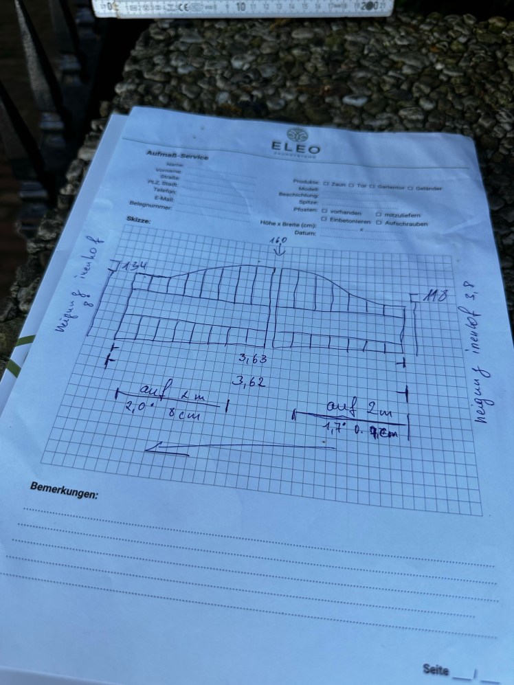 Als ich mich für ein neues Tor für mein Grundstück entschied, war eines klar: Es muss perfekt passen! Obwohl ich viele Dinge gut kann (mein Sohn Vincent würde das bestätigen, hihi), bin ich kein Handwerksprofi. Deshalb habe ich den optional verfügbaren Aufmaßservice von ELEO genutzt – und ich könnte nicht glücklicher sein! Der geringe Aufpreis dafür hat sich definitiv gelohnt.